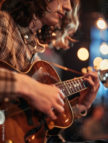 © Maple Bridge, Obraz premium The mandolinist on stage