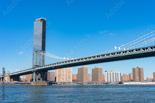 Naklejka premium The Manhattan Bridge over the East River next to the Lower East Side New York City Skyline