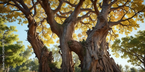 Naklejka premium The Mast tree's unique bark and gnarled branches in the garden, green, vegetation
