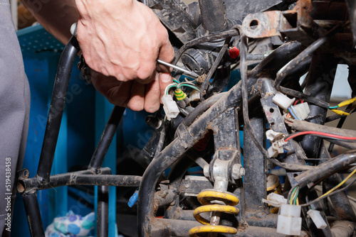 Obraz premium The master conducts disassembly of equipment for maintenance.
