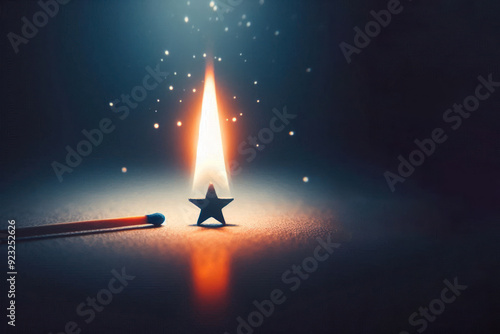 Fototapeta premium The match lit a small star. Space for text.