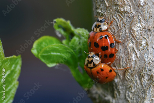 Fototapeta premium the mating of ladybugs, 무당벌레의 짝짓기