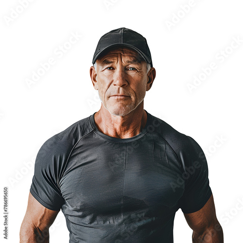 © Giu Studios, Fototapeta premium The Mature Man’s Path to Longevity: Fitness and Healthy Lifestyle via Gym Clothing, Isolated on Transparent Background, PNG