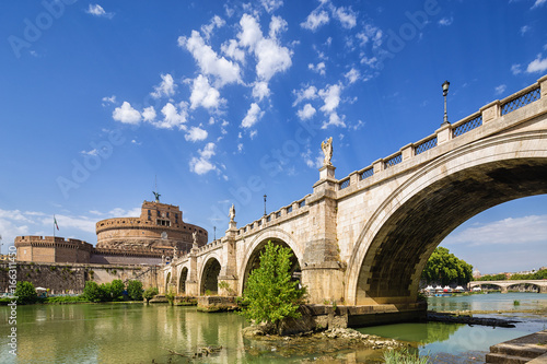 © phant, Naklejka premium The Mausoleum of Hadrian, usually known as Castel Sant'Angelo (Castle of the Holy Angel) and Sant' Angelo Bridge. Rome. Italy.