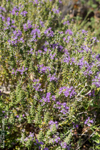 Naklejka premium The medicinal, wild plant (Satureja montan) close-up