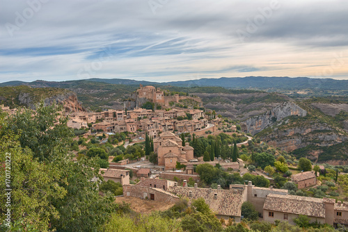© Uvamenfoto, Fototapeta premium The medieval village of Alquezar, in the province of Huesca, with its clay roofs and its castle on the hilltop.