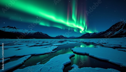 © Anajak, Naklejka premium the mesmerizing aurora borealis, or northern lights, in a remote arctic landscape