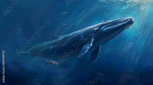 © Augusto, Fototapeta premium The Mighty Blue Whale and Its Dolphin Companions