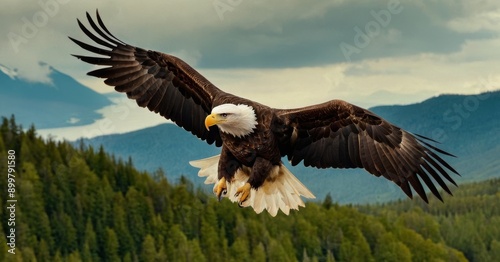 © Abdo, Fototapeta premium The Mighty Hunter : Bald Eagle Captured While Flying in Stunning 35mm Detail