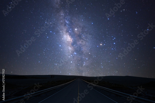 Naklejka premium The milky way galaxy over the road with stars and space dust in the universe