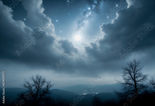 © Eugen, Fototapeta premium The Milky Way in the sky, a bright light. Night sky, great exposure. Wallpaper, background, poster. Copy space