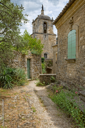 Fototapeta premium The minuscule village of Maubec-Vieux. A magnificent clock tower, topped by a...