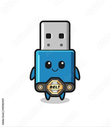 © heriyusuf, Fototapeta premium the MMA fighter flash drive usb mascot with a belt