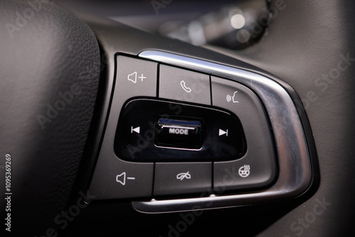 Fototapeta premium The modern cars steering wheel control panel boosts convenience and performance