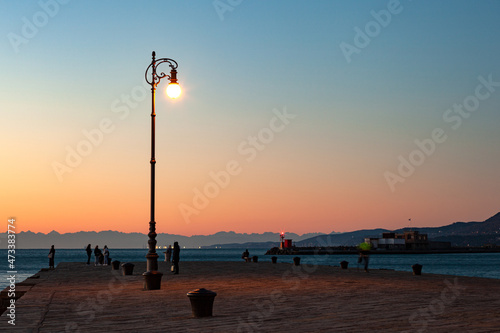 Obraz premium The Molo Audace pier of Trieste in a winter evening