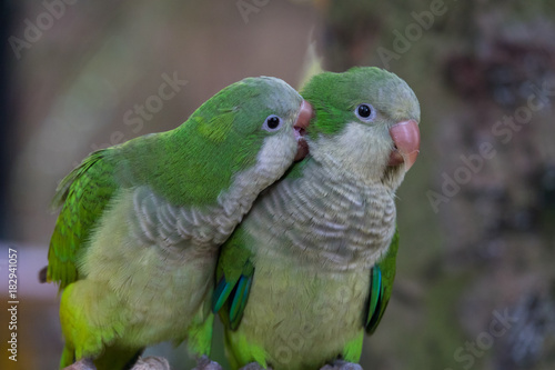 © jangnhut, Fototapeta premium The monk parakeet (Myiopsitta monachus), also known as the Quaker parrot, is a small, bright-green parrot with a greyish breast and greenish-yellow abdomen