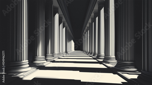© Kanurism, Fototapeta premium The monochrome background depicts a long corridor in a building