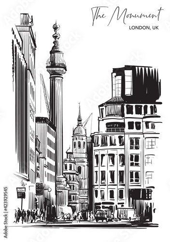 Fototapeta premium The Monument to the Great London Fire 1666. Black line sketch isolated on...