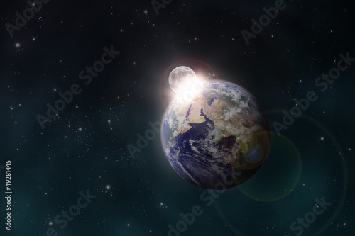 © suppakij1017, Fototapeta premium the Moon impacts the Earth space scene
