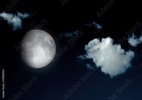 © marusja2, Obraz premium The moon in the night sky in clouds