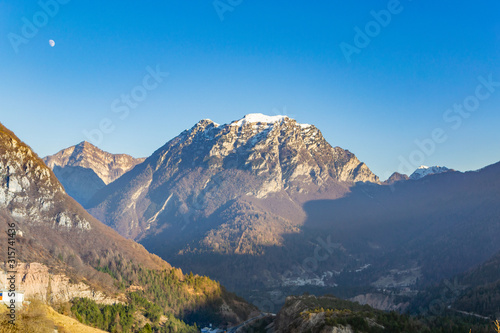 © Ivan Abramkin, Obraz premium The moon over the mountains in Dolomites Alps, Italy