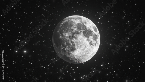 Fototapeta premium The moon shining brightly in the night sky surrounded by stars
