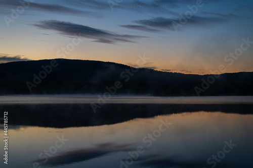 © Matthias, Fototapeta premium the morning sky over the fjord Tinnsjå is colored by the sun