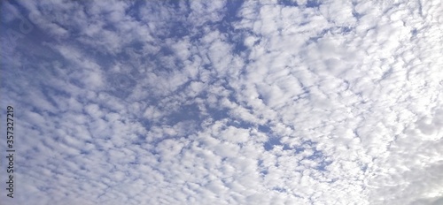 Fototapeta premium The morning sky, white clouds alternating with natural waves, obscures the blue background from Thailand.