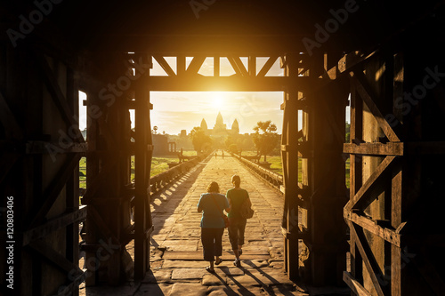 © Soonthorn, Obraz premium the morning sunrise at entrance west gate to angkor wat at siem reap, cambodia