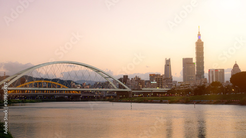 © pinglabel, Obraz premium The most beautiful Viewpoint rainbow bridge taipei in taiwan.