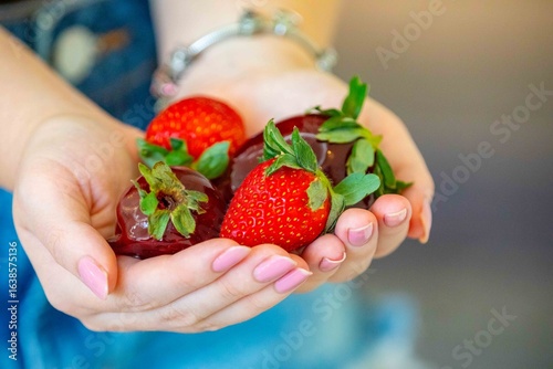 Obraz premium The most perfect sweet in the world, the iconic dessert strawberry of love on...