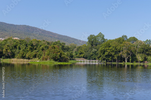 © 88studio, Fototapeta premium the mountain and pond in the park