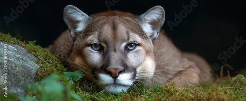 © ckybe, Obraz premium The mountain lion resting calmly on the earth quietly and peacefully