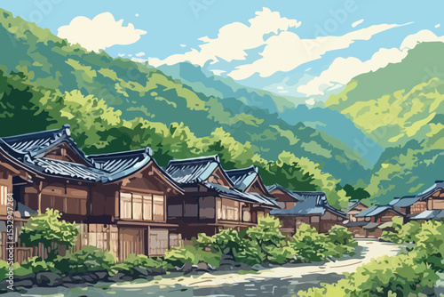 © MImo95, Fototapeta premium the mountain village in japan vector