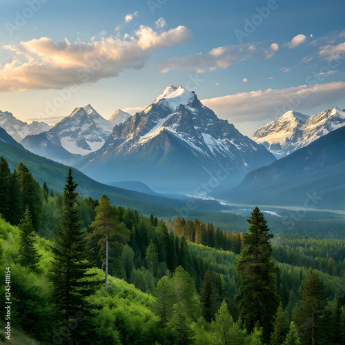 © misbah, Fototapeta premium The mountains are breathtakingly beautiful, with one half covered in snow.