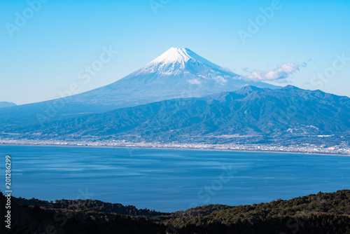 Fototapeta premium The Mt. Fuji over the sea of Suruga bay in Japan.
