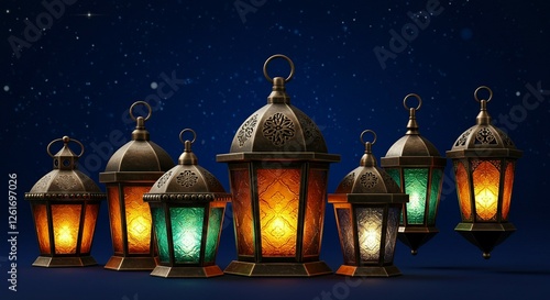 © MST.RAZIA BEGUM, Obraz premium The Muslim holy month with Ramadan lanterns in desert