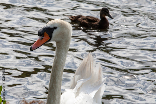 Naklejka premium The mute swan is a very large white waterbird. It has a long S-shaped neck...