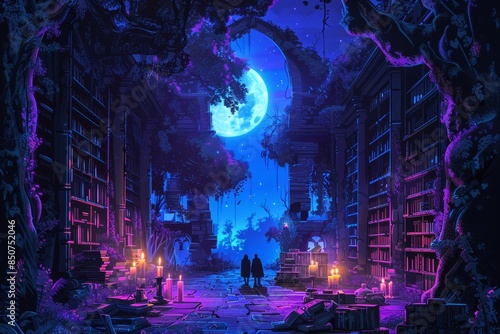 Naklejka premium The mysterious shadow libraries of fantasy - Stock