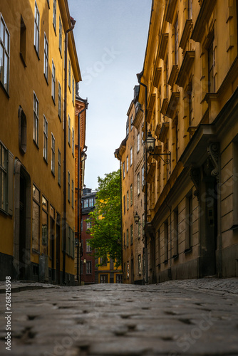 © gdefilip, Fototapeta premium The narrow cobbled streets of Stockholm in Spring