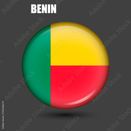 © Yura, Obraz premium The national flag of Benin is in the shape of a circle.Vector. Round 3d flag icon with high detail. Spherical illustration of the flag.