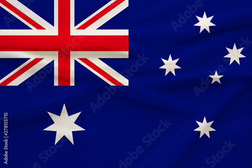 © kittyfly, Fototapeta premium The national flag of the country of Australia on gentle silk with folds from the wind, the concept of travel, immigration, politics, copy space, close-up