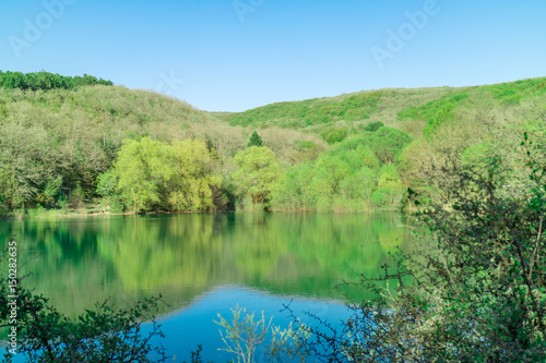 © Dmitriy, Fototapeta premium The nature of the Crimea is a beautiful place. The lake near the Skelsky cave near the village of Podgornoye, Sevastopol, Balaklava district.