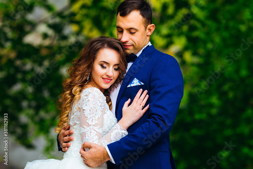 © Ivan, Fototapeta premium the newlyweds closed their eyes and gently embrace on the backgr