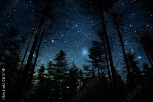 © KerXing, Fototapeta premium The night sky with stars and trees in the foreground
