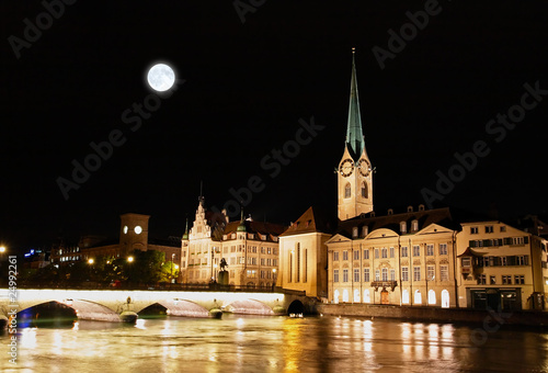 © Gary, Naklejka premium The night view of major landmarks in Zurich