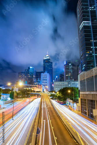 Fototapeta premium The night view of the city and the traffic in Hong Kong