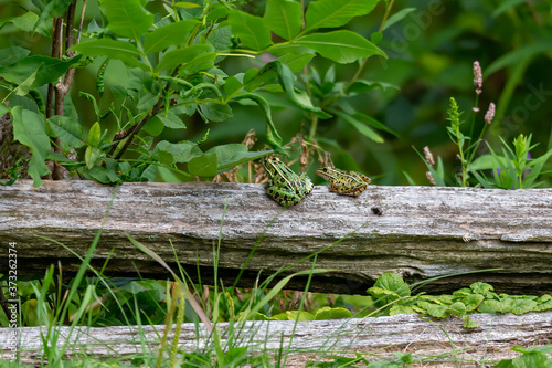 Fototapeta premium The northern leopard frogs waiting for prey.