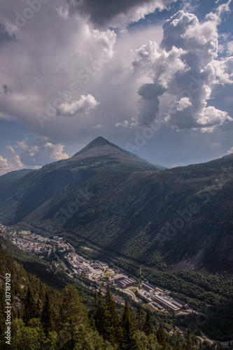 © Ungrim, Fototapeta premium The Norwegian city of Rjukan, which was in the shade most of the year. Gaustadtoppen mountain above the city