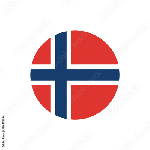 Fototapeta premium The Norwegian flag is displayed in a circular shape on a white background